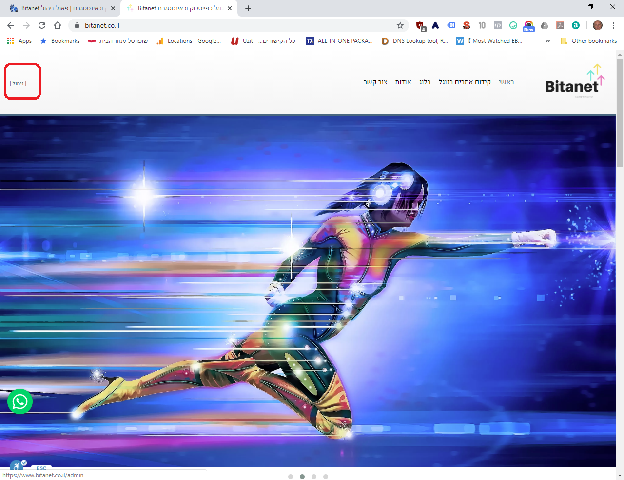 בדף חדש ניכנס לאתר שלנו לניהול האתר בלחיצה על כפתור הניהול: